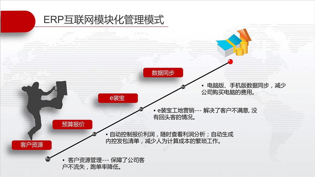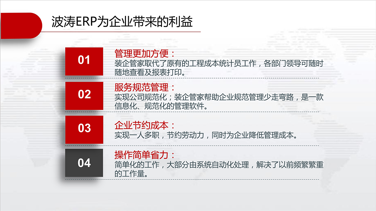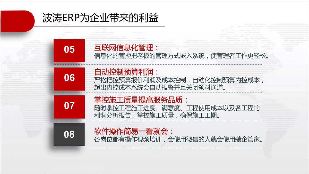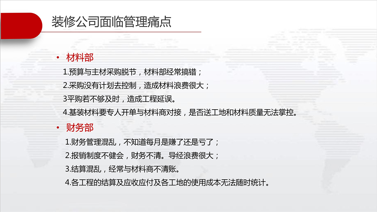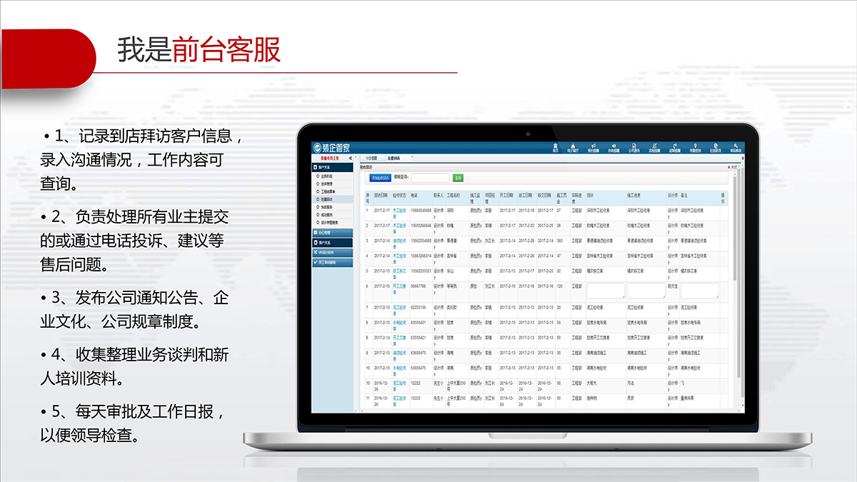 装企管家可以完整记录客户资料及联系情况不丢失,快速查询信息,客户状态及跟进情况一目了然;及时提醒相关人员完成各自的工作,并提供相应的工具、标准、分析等从而实现客户服务的标准化。