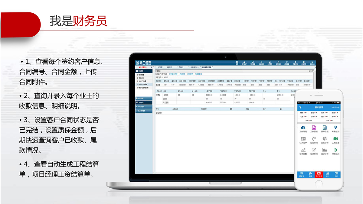 财务员能够快速做出内部提成与外部结算,有效控制项目内外部控制点;该项目能否结算与每个项目的利润都能一目了然。